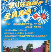 本日は、北翔館の入所フロアと通所フロアそれぞれで開催する夏祭りの事前告知をさせていただきます【夏祭り日程】・8月3日(土) 2階フロア・8月4日(日) 2階東、3階フロア・8月5日(月)、6日(火) 通所リハビリテーション入所フロアのご家族様の来館につい ...
