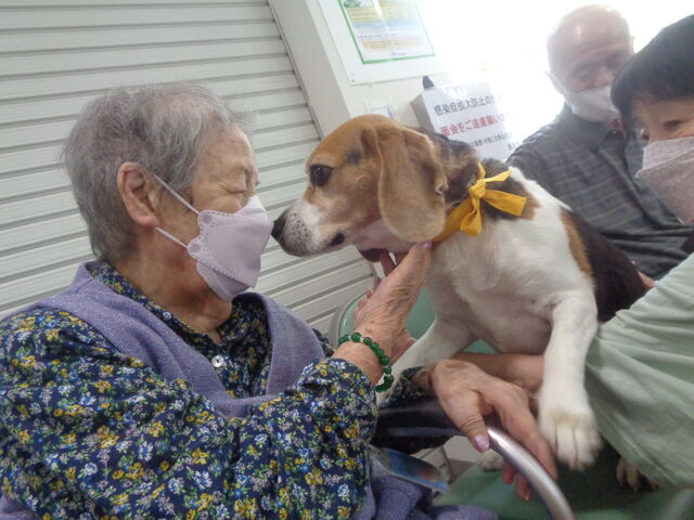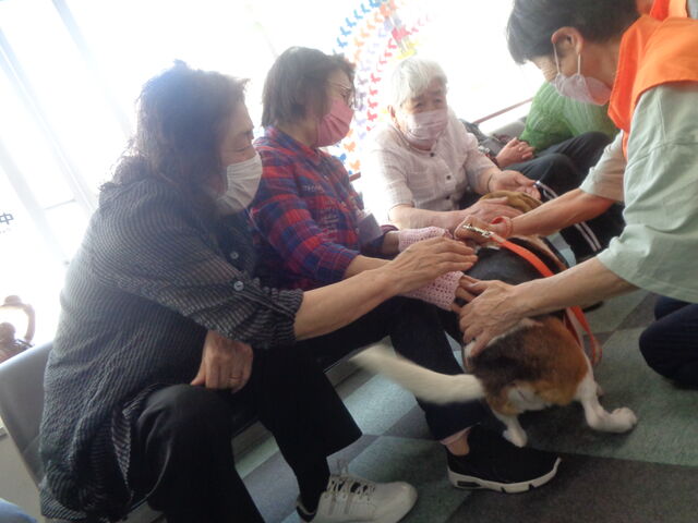 ようこそワンちゃん① 2023年06月24日 18:07 コロナ禍で休止となっていた北翔館の好評イベント「ようこそワンちゃん」が6月から遂に再開となりました 以前は毎月1回入所フロアで実施しておりましたが、今年は通所フロアでの実施となります 今回は3匹(ビーグル犬2匹、ゴールデンレトリバー1匹)のワンちゃんに来てもらい、通所リハビリの利用者様と交流を図っていただきました あまりの盛り上がりに当初参加予定ではなかったご利用者様も途中参加され、総勢名以上のご利用者様に参加いただき大好評のイベントとなりました 「NPO法人 北海道ボランティアドッグの会」様 この度はご来館ありがとうございました 来月もご利用者様、職員一同お待ちしております 「通所リハビリテーション」カテゴリの最新記事 タグ :#通所リハビリテーション < 前の記事次の記事 > コメント コメントフォーム 名前 コメント 記事の評価 リセット リセット 顔 星 情報を記憶 コメントを投稿する