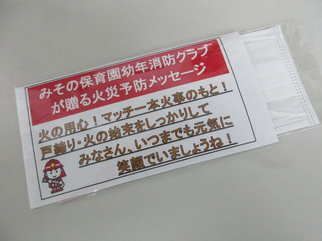 また、ご利用者様全員に火災予防メッセージ付きマスクも頂きました