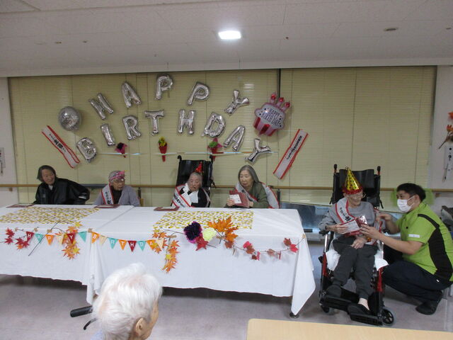 11月は3階フロア3名、2階フロア2名、2階東フロア5名の合計10名のご利用者様がお誕生日を迎えられました