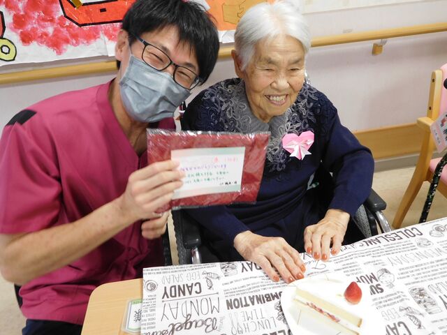 ご利用者様と職員が一緒にお祝いし、元気にそして楽しく日々過ごしていきたいと思います![]()