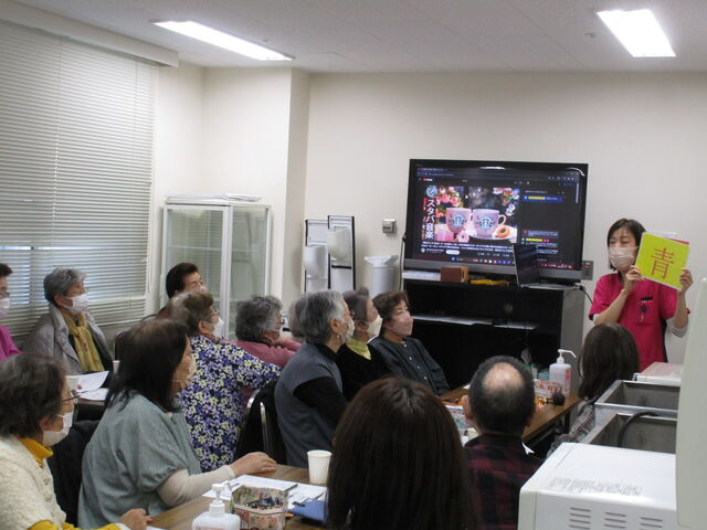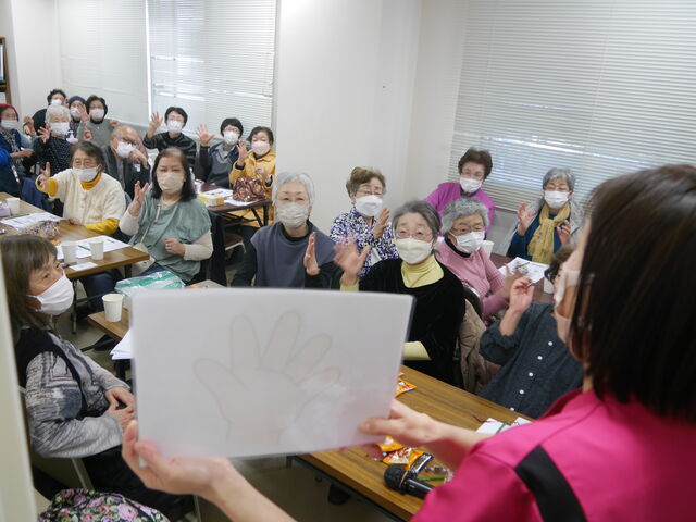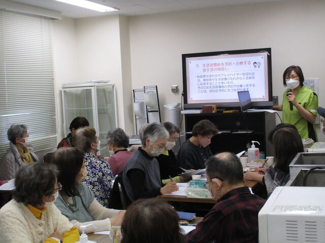 介護福祉士であり認知症ケア専門士という専門職視点から、認知症予防の基礎知識や食生活の内容等をお話しし、講座終了後にはアクティビティとして「後出しじゃんけん」等の脳トレを参加者の皆さんに体験していただきました