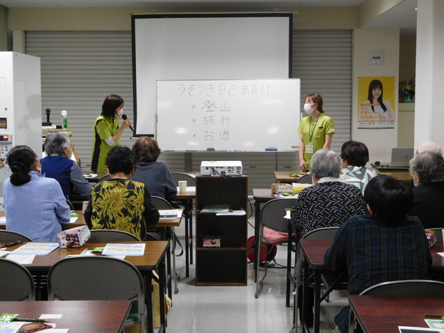 後半のアクティビティでは、「ナインドット」や「うそつき自己紹介」という脳トレをゲーム感覚で参加者の皆さんで楽しみながら体験して頂きました