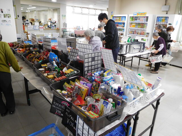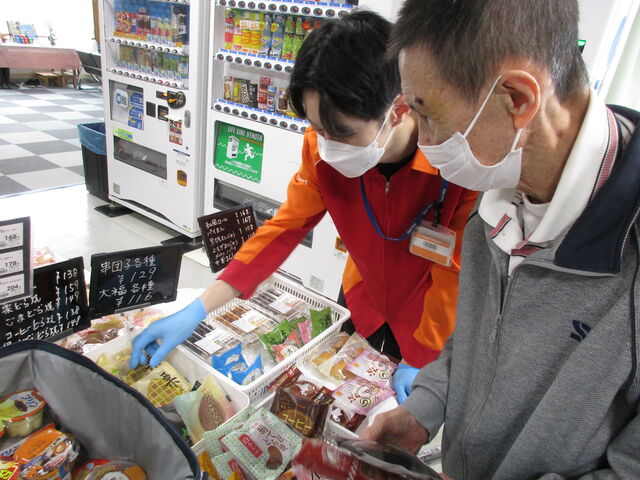 本日はセイコーマートさんのご協力により、通所リハビリテーションのご利用者様を対象に1階ロビースペースへ即席販売店を設置しました