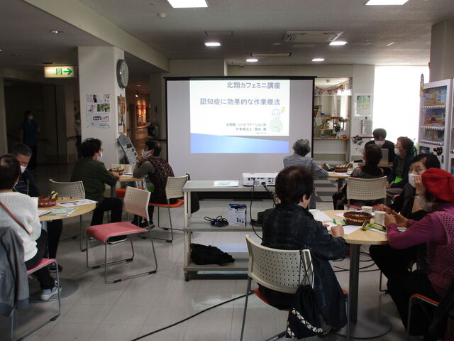 講座は「認知症に効果的な作業療法とは」という題材で、当施設の作業療法士を講師としてお話させていただきました。