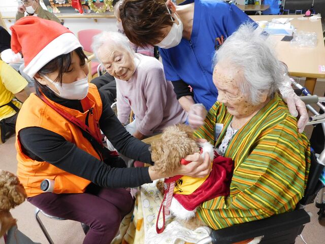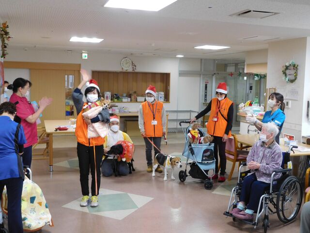 ボランティアさんとワンちゃんはクリスマス衣装でのご来館で、一気にクリスマスの雰囲気となりました