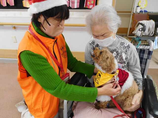 ボランティアスタッフさんもワンちゃんもサンタクロース
