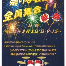 本日は、北翔館の入所フロアと通所フロアそれぞれで開催する夏祭りの事前告知をさせていただきます【夏祭り日程】・8月2日(土) 2階フロア・8月3日(日) 2階東、3階フロア・8月7日(木)、8日(金) 通所リハビリテーションこちらは8月3日(日)のポスター ...